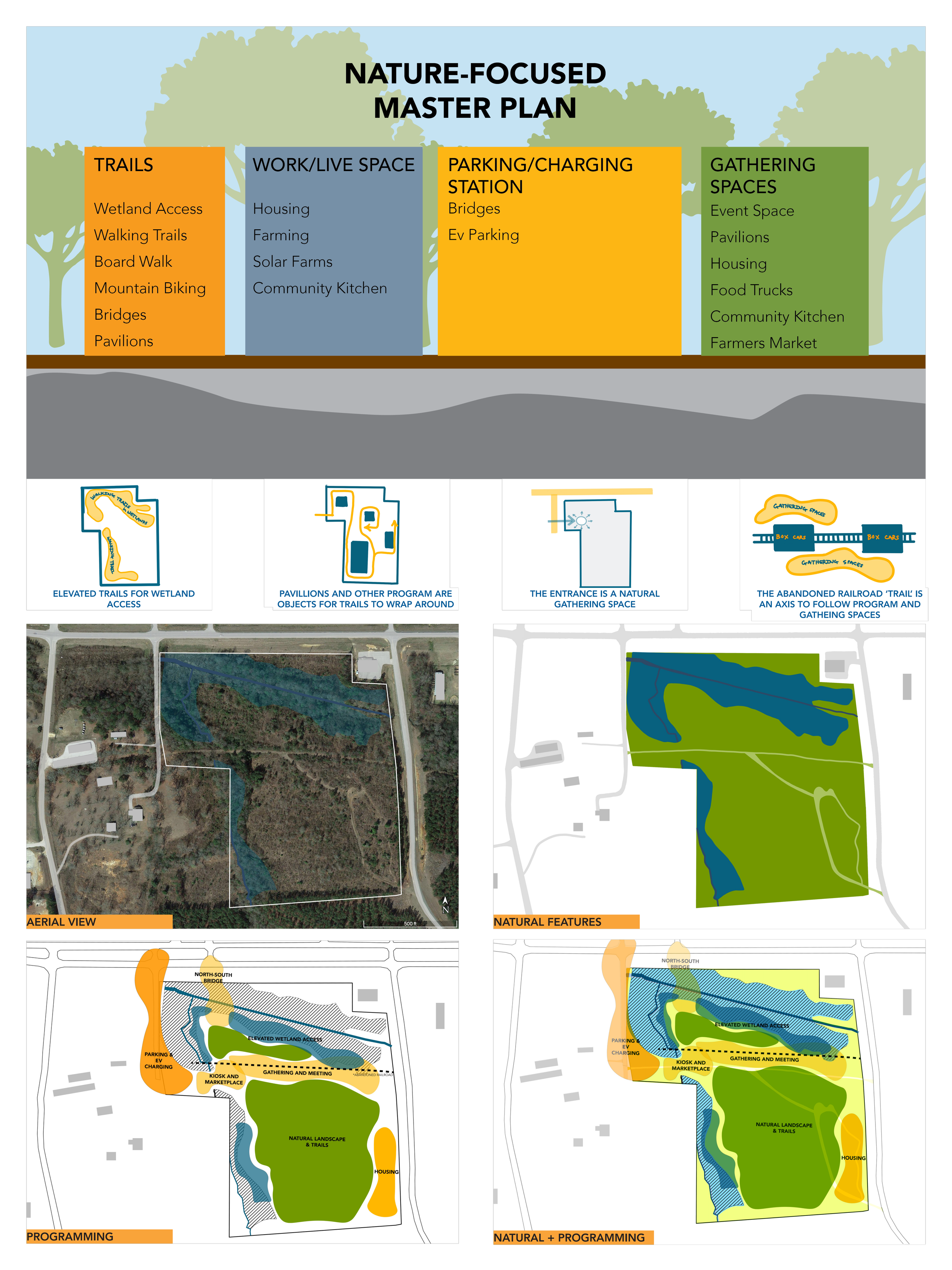 Our preliminary site design was developed by students in the Freedom By Design program at Auburn University, helping us to join the magic of the South with the innovations of tomorrow to create a place where both can merge and be utilized by the whole community, and promote a healthier future for both the people and the natural ecosystem. At the bottom of this section, as well as our other project subsections as well, we’ve displayed their detailed findings as they pertain to past already existing precedents that exist today, as well as what some concepts and ideas could look like in the future for us to implement in our project.